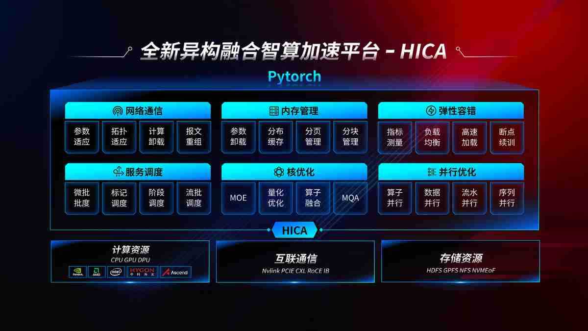 通过自研的服务层、、、、中间适配层、、以及调度编排算法,,,采用数据并行、、、模型并行等多种并行方式,,,把并行计算任务进行有效的分解,,使其分别由相应的软件栈和算力资源来承接。。当GPU资源变化,,HICA可以实时动态调度计算子任务并调整模型拓扑和架构,,,,以充分聚合各种算力资源。。。